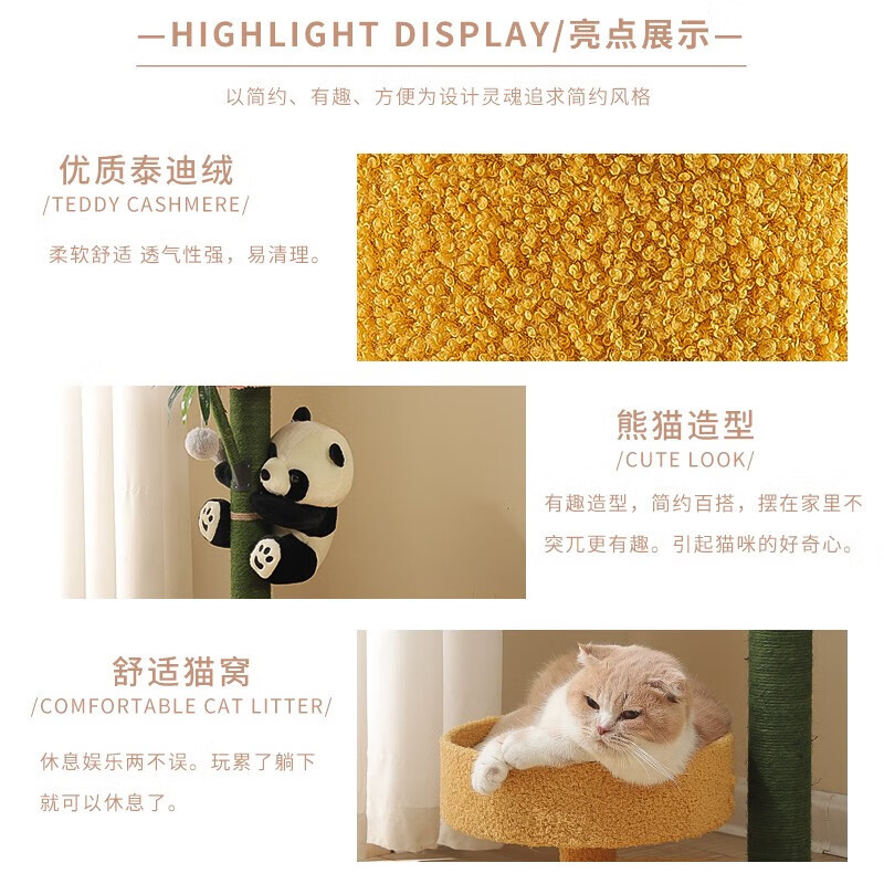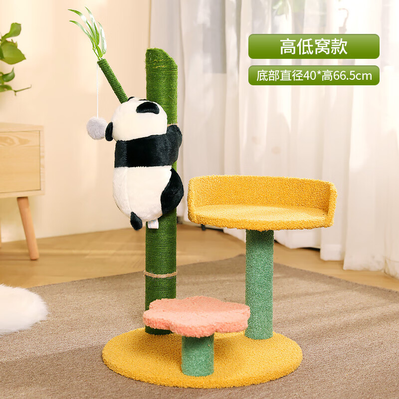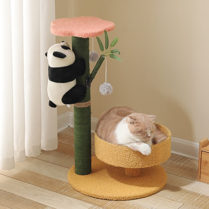 猫管家 猫爬架 熊猫竹子猫爬柱 剑麻猫抓板猫咪玩具 猫窝小型猫爬架猫树 小户型带窝 宠物养猫全套用品 竹子抓柱