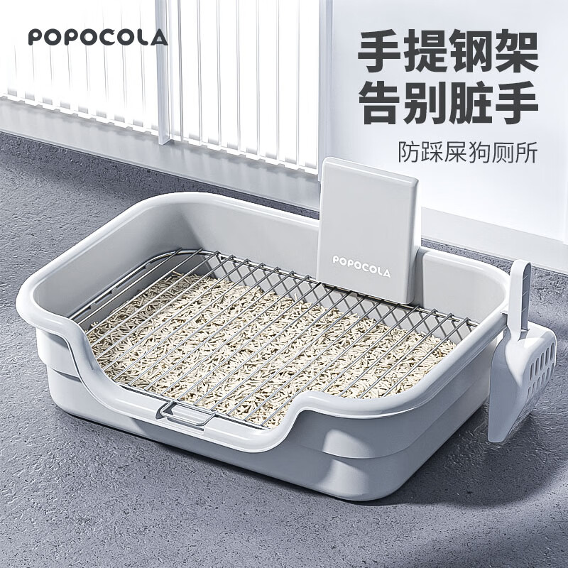 POPOCOLA狗狗厕所小型犬专用尿盆防踩屎便盆不锈钢小狗用大小便神器狗砂盆 手提式【间距15mm】