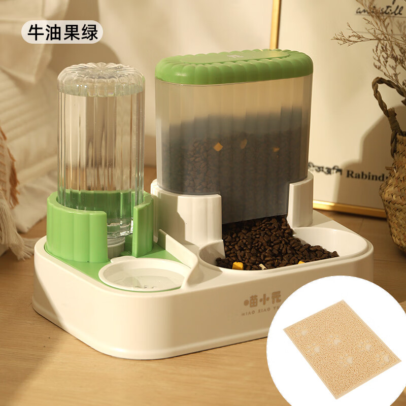 猫碗食盆双碗自动饮水喂食器一体狗狗猫咪喝水碗猫粮狗碗宠物用品 牛油果绿【滤芯】 餐垫 猫狗通用加购收藏优先发货