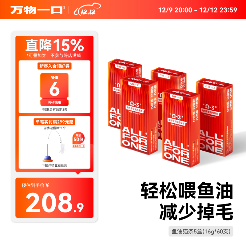 万物一口鱼油猫条零食猫条无添加无诱食剂增肥发腮猫咪猫条猫湿粮囤货装 鱼油猫条5盒(16g*60支)