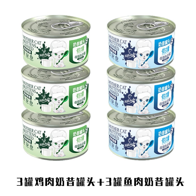 幼猫奶昔罐头奶糕母猫产后营养食品猫妈妈哺乳期孕猫主食猫粮下奶 3罐鸡肉 3罐鱼肉【共6罐】