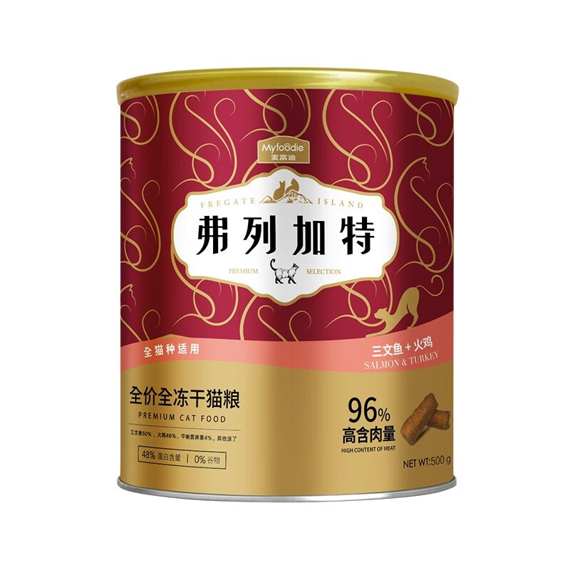 弗列加特96%高含肉量 全价主食冻干猫粮 成幼猫通用 火鸡三文鱼500g