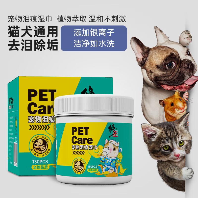修正 泪痕湿巾宠物猫咪狗狗去泪痕免洗湿纸巾比熊泰迪加菲猫擦眼睛眼部祛眼屎清洗干洗清洁用品130抽/桶