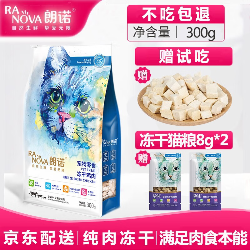 朗诺猫用冻干 高蛋白冻干宠物零食 鸡肉牛肉深海鱼 互动奖励 发腮美毛 冻干鸡肉300g