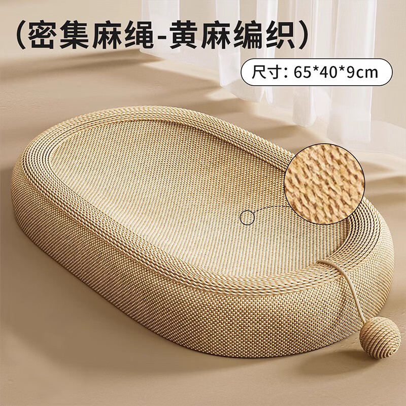 喵丽丝剑麻猫抓板猫窝一体耐磨不掉屑猫咪玩具猫爪板耐抓四季通用抓盆 65CM超大 椭圆跑道剑麻布