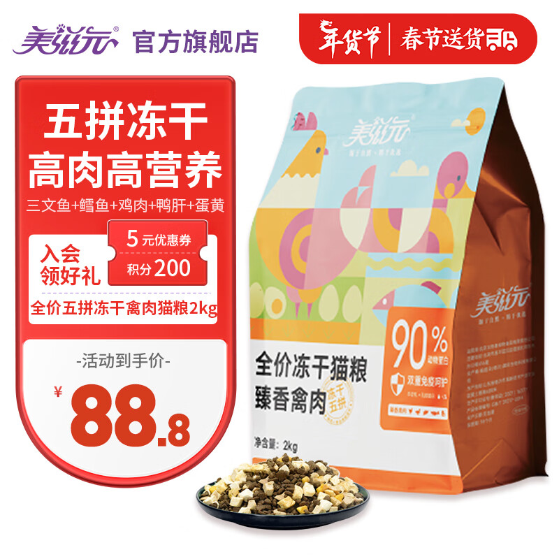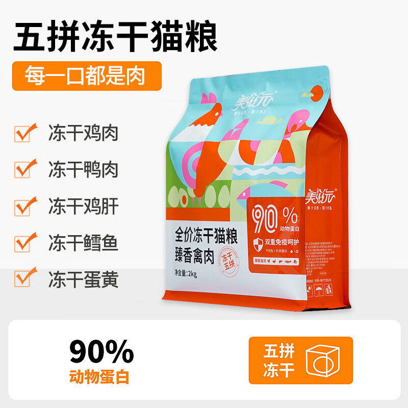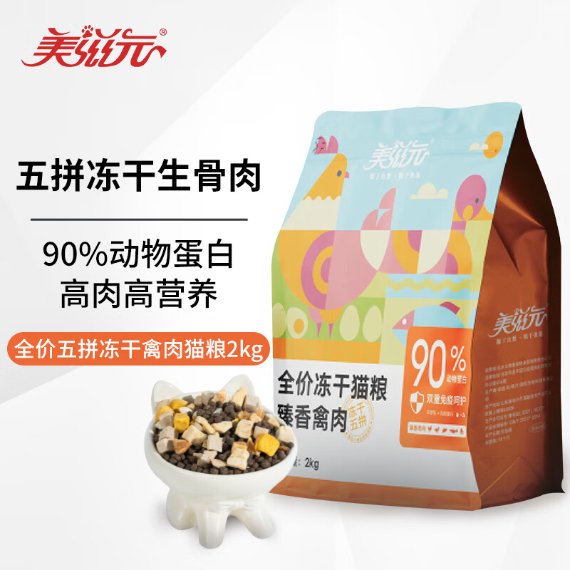 美滋元五拼冻干猫粮 臻香禽肉成猫幼猫全猫咪通用全价无谷猫粮 【五拼冻干】臻香禽肉2kg