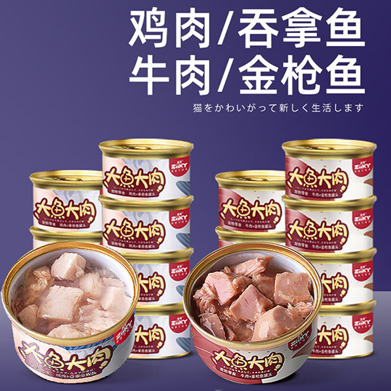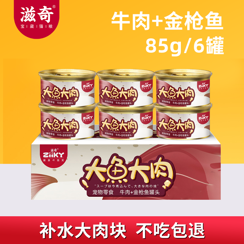 滋奇大鱼大肉猫罐头85g*6罐/箱成幼猫高汤补充营养猫咪湿粮罐头猫零食 牛肉配金枪鱼*6 85g/罐