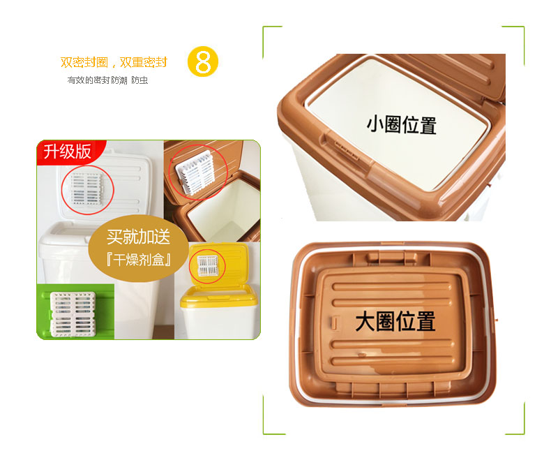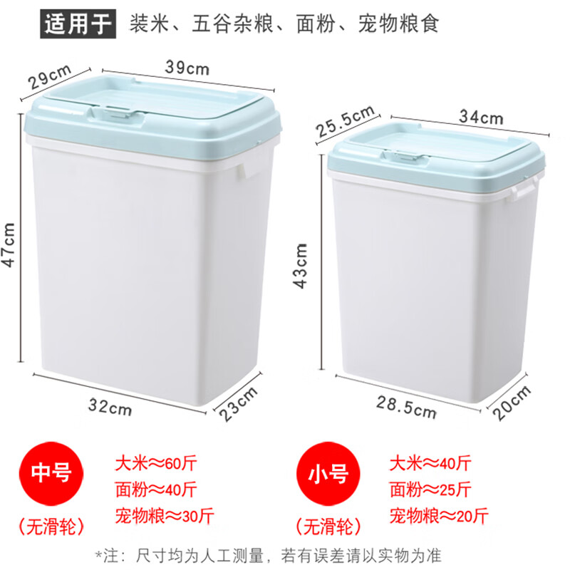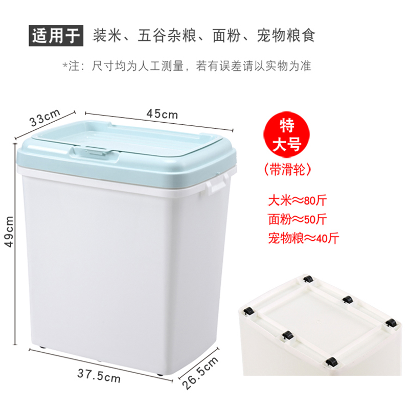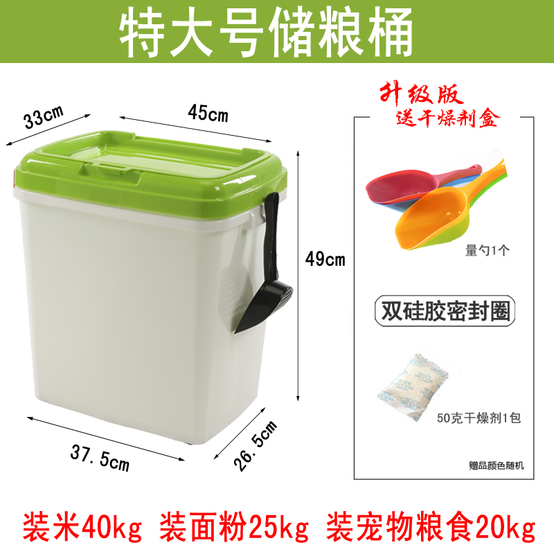 狗粮桶20公斤带密封圈加大加厚宠物储粮桶15狗粮桶10猫粮桶密封防潮20-B 特大号绿盖(装宠粮20kg) 带滑轮