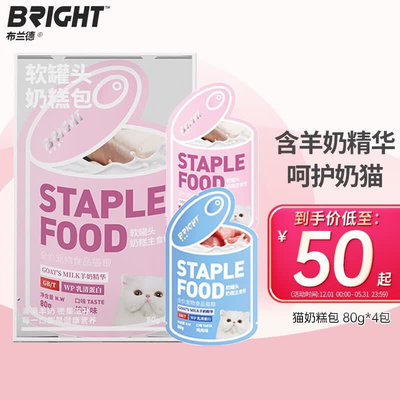 布兰德全价猫罐头主食软罐头理想主食猫湿粮成猫幼猫全期营养补充猫零食 猫奶糕包(4包/盒)