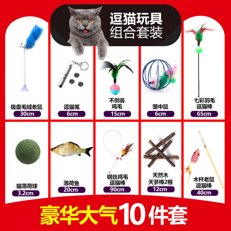 猫玩具套装自嗨激光逗猫棒薄荷鱼不倒翁老鼠解闷猫咪宠物用品 【优选超值】十件套