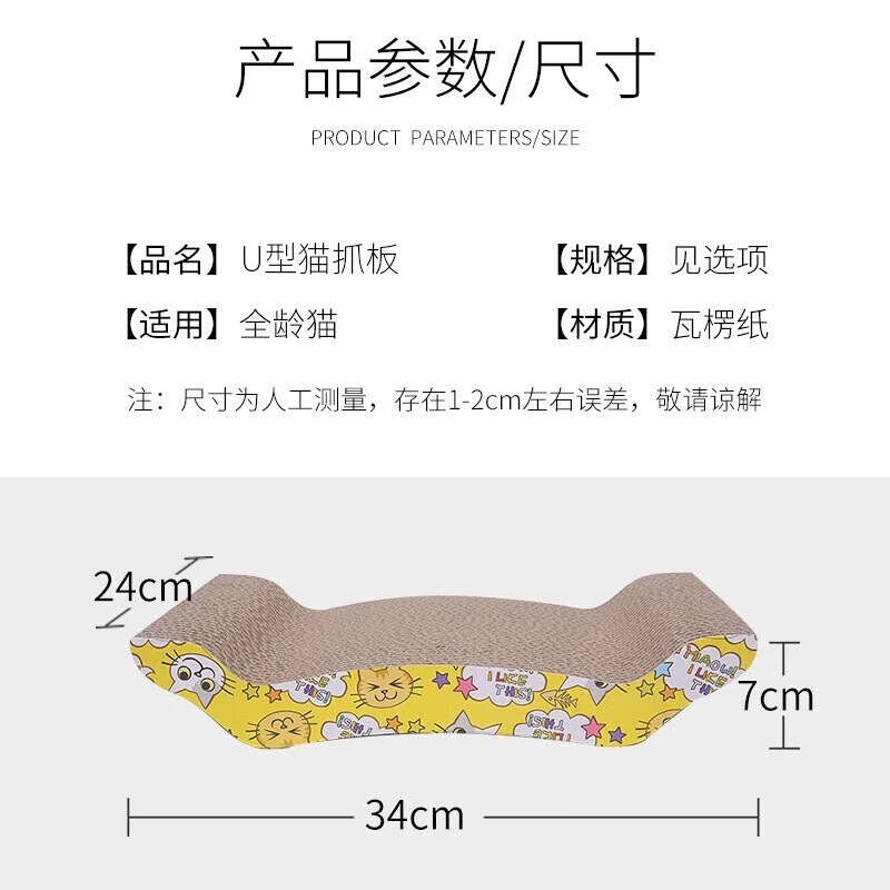 憨憨宠 猫抓板瓦楞纸猫窝猫爪板猫玩具磨爪器大号宠物猫咪玩具用品 U形猫抓板