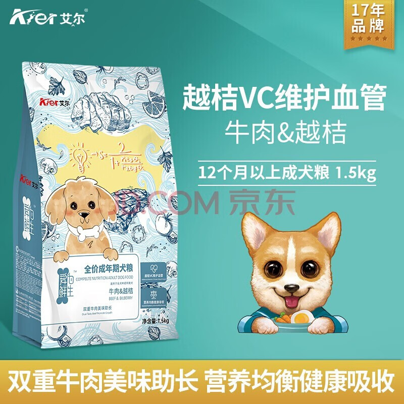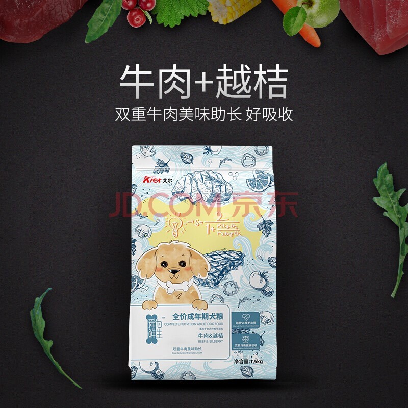艾尔成犬粮 爱为鲜生狗粮牛肉越桔富含维生素VC配方 泰迪金毛拉布拉多比熊萨摩耶全犬种通用 1.5kg