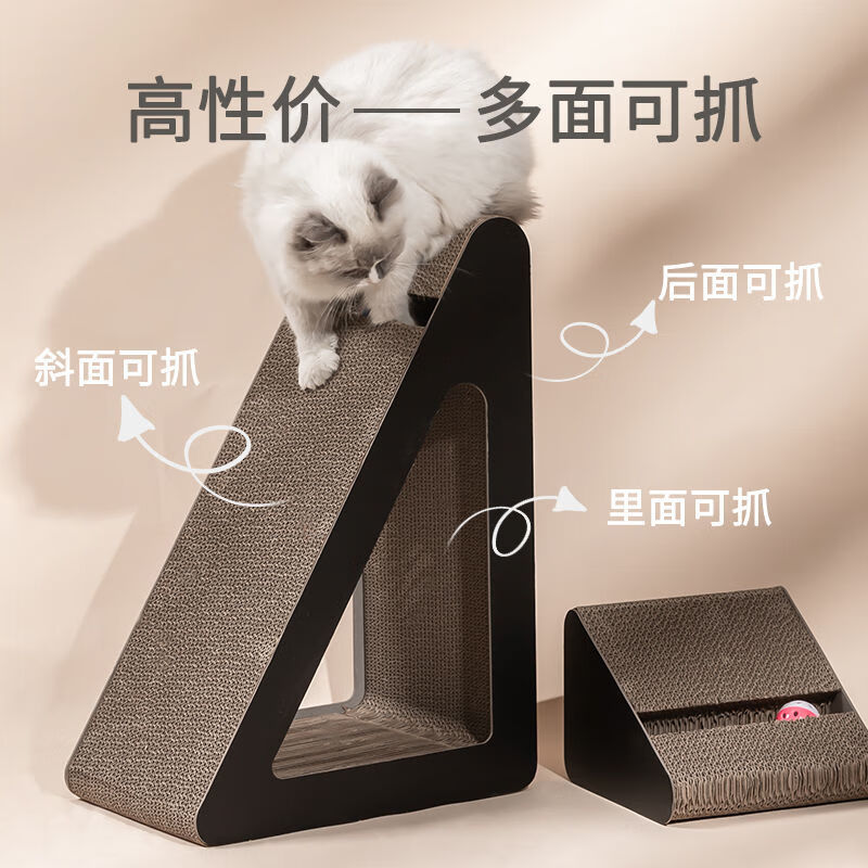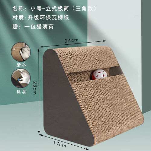 猫抓板立式耐磨耐抓不掉屑防抓沙发猫窝l型瓦楞纸猫玩具猫咪用品 立式小号实芯三角
