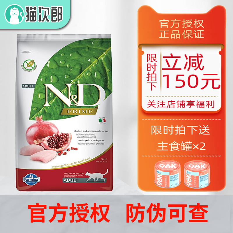 法米娜猫粮(farmina) 苹果猪意大利进口成猫无谷粮法明娜猫粮 【成猫粮】鸡肉石榴5kg