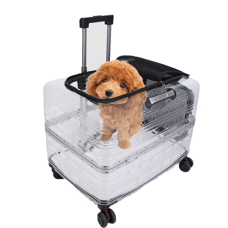 宠物猫咪大号拉杆箱太空舱航空箱狗狗外出便携手提全透明箱包用品 透明色【大号拉杆箱-带风扇】 可装40斤猫咪25斤狗狗