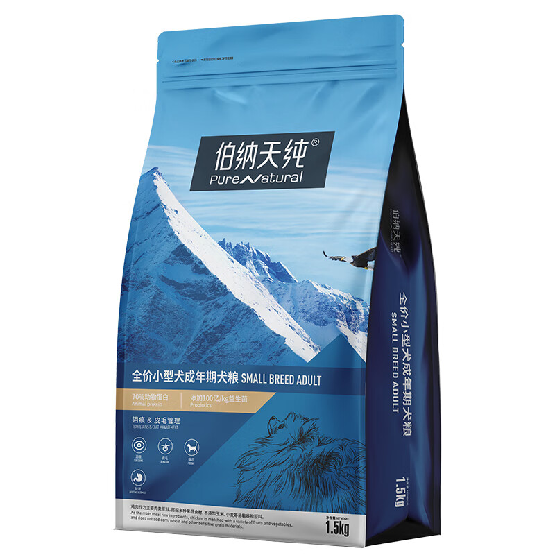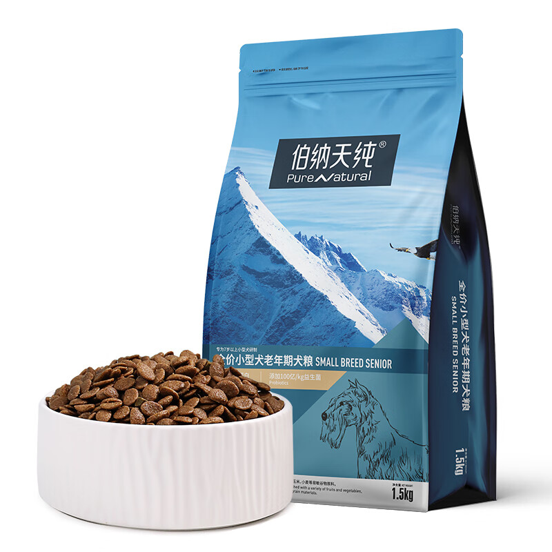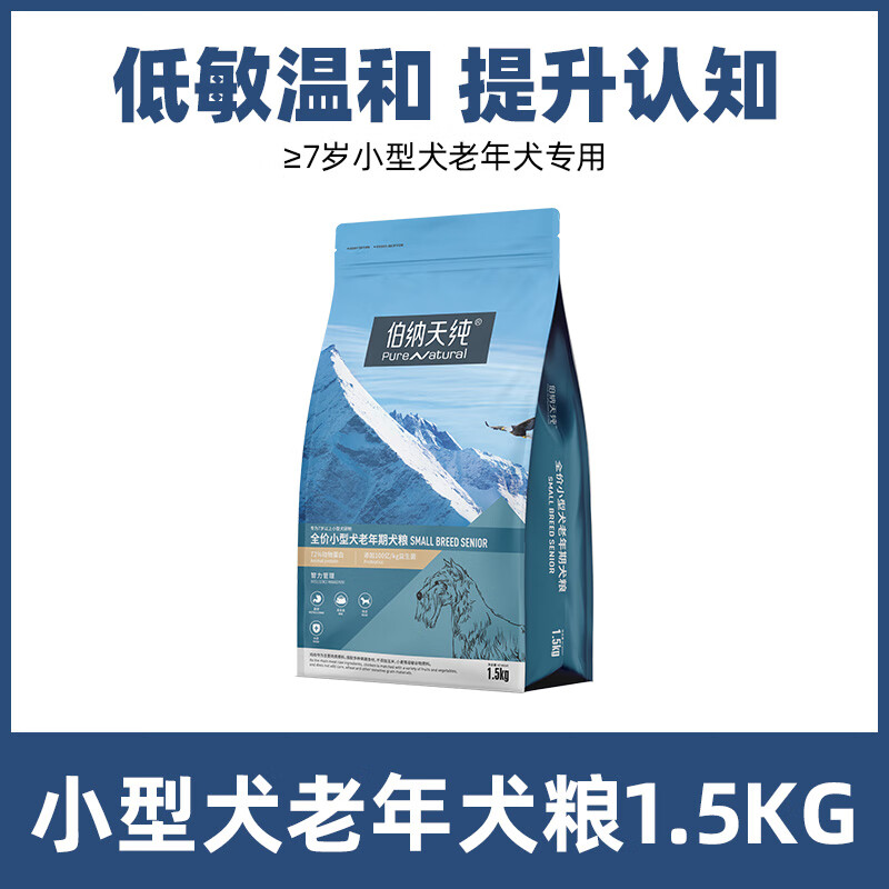 伯纳天纯小型犬高龄老年犬专用狗粮 7岁以上通用型天然犬粮 1.5kg 小型犬老年犬专用(鸡肉 鱼肉混合 1.5kg
