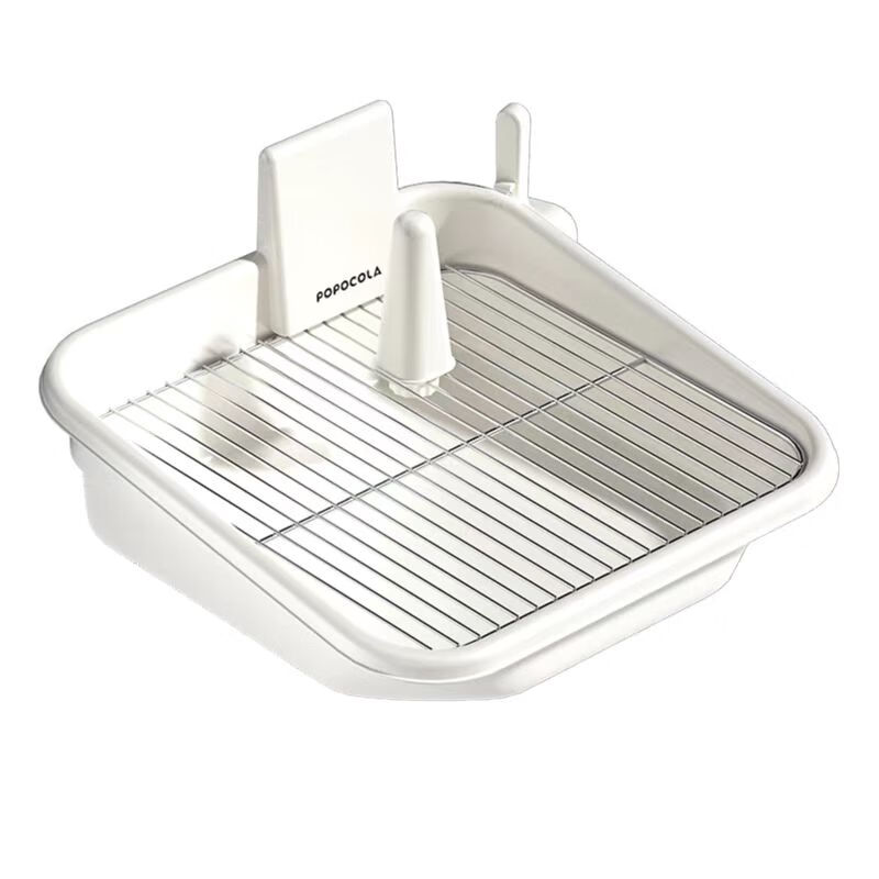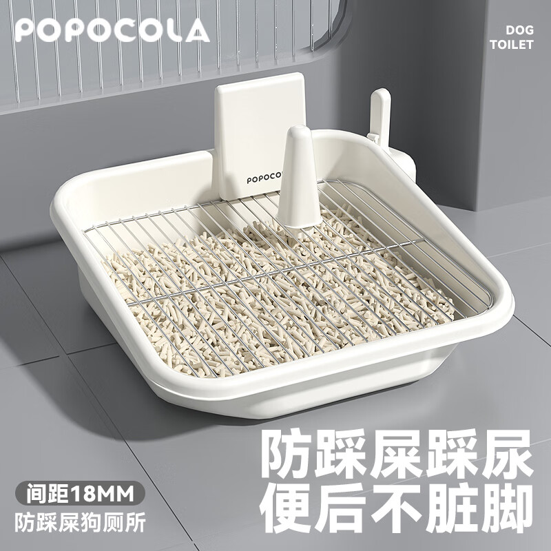 POPOCOLA不锈钢狗狗厕所防踩屎狗沙小型犬宠物尿盆狗砂盆 白色18MM