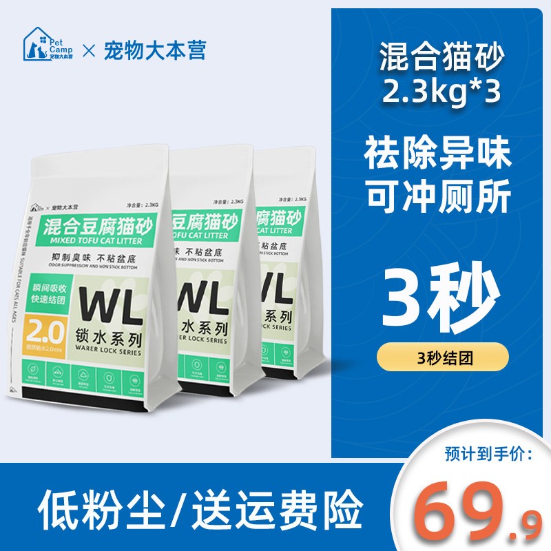 宠物大本营2.3KG原味混合豆腐猫砂2.0mm颗粒低尘易结团除臭吸水猫砂可冲厕所 混合豆腐猫砂2.0mm颗粒*3