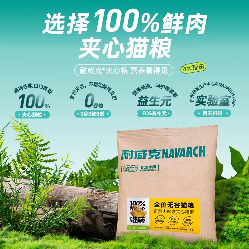 耐威克全价无谷鲜肉夹心喵酥1.2kg通用型全期营养发腮猫粮 【鲜鸡肉配方】夹心喵酥1.2kg