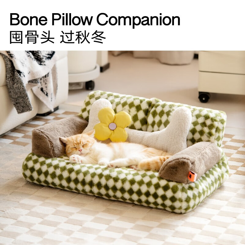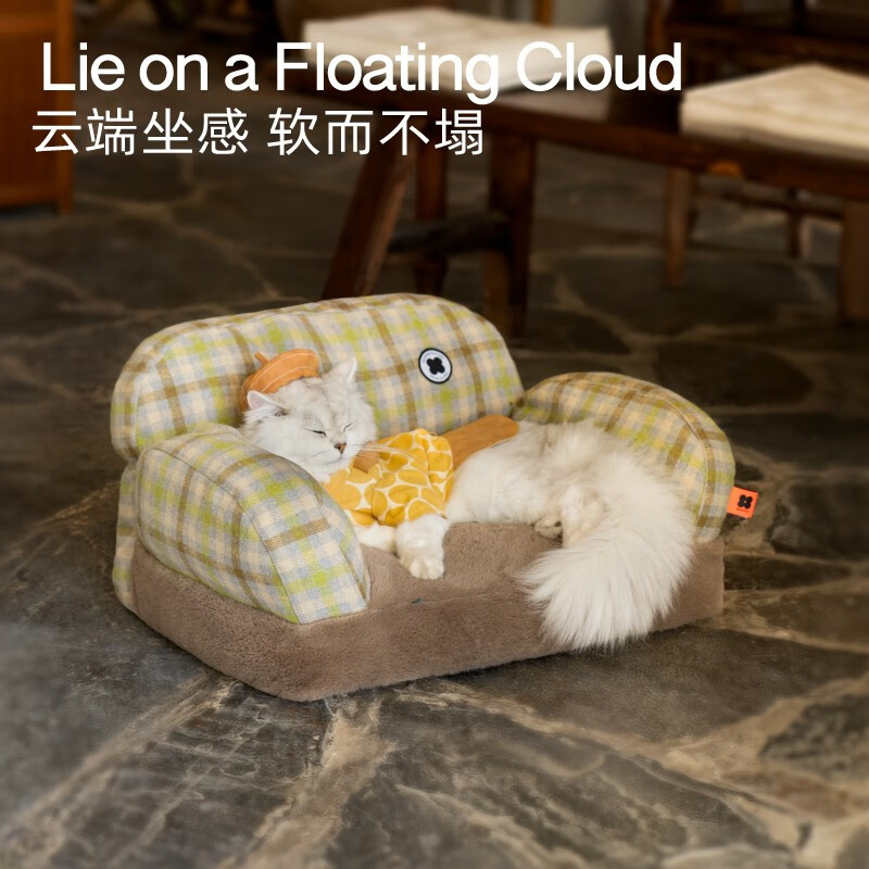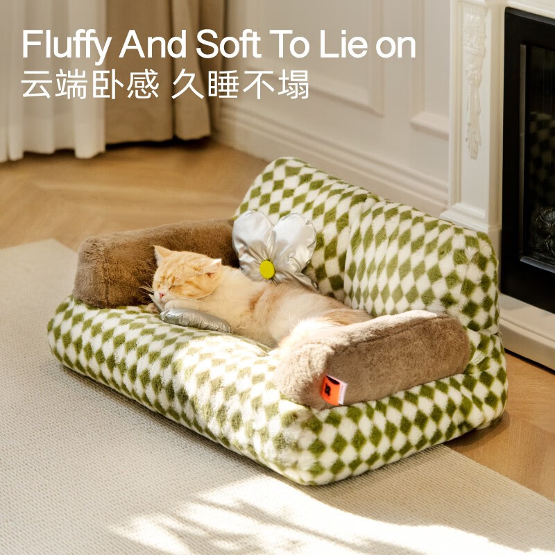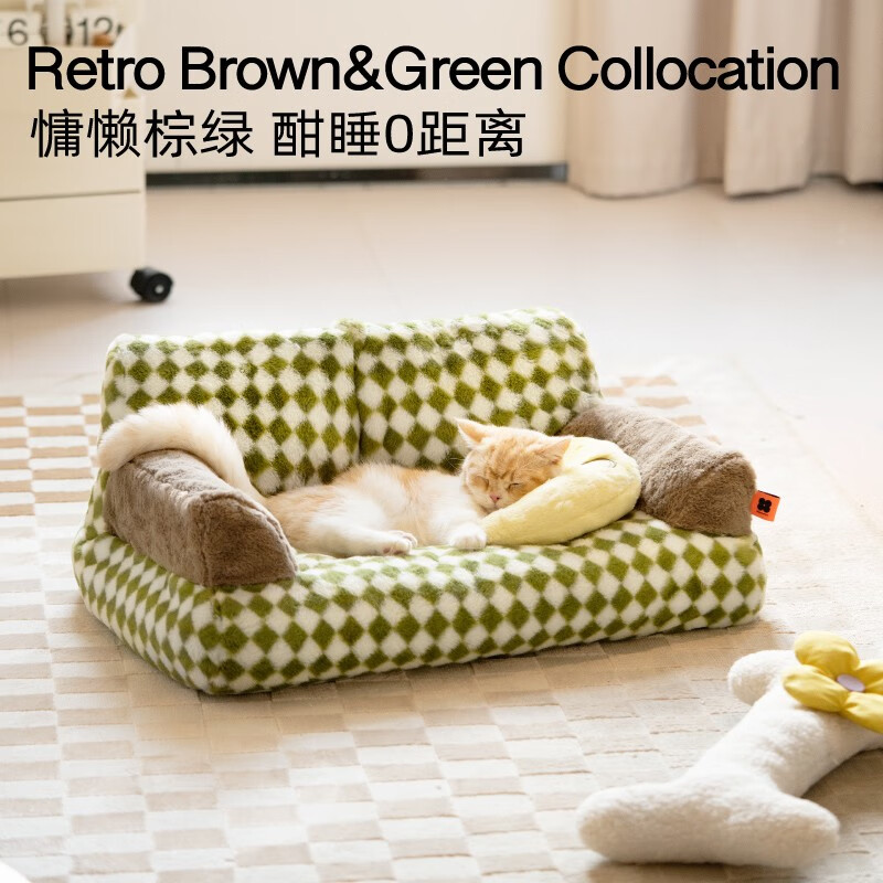 喵乎汪也 猫沙发猫窝冬天保暖猫咪四季通用猫床宠物床睡觉窝垫小猫狗狗窝 复古-绿色菱形格 宠物沙发[18/斤以内]