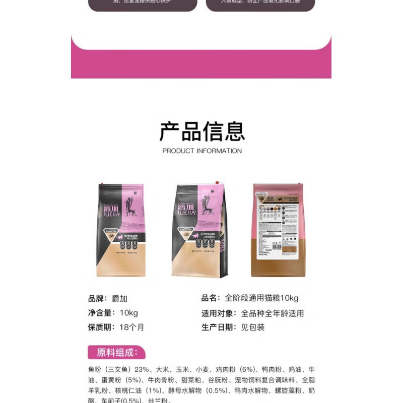 爵加全猫通用猫粮10kg成猫幼猫专用布偶美短英短蓝猫通用型20斤装 【全猫通用 健康体态】20斤 10kg