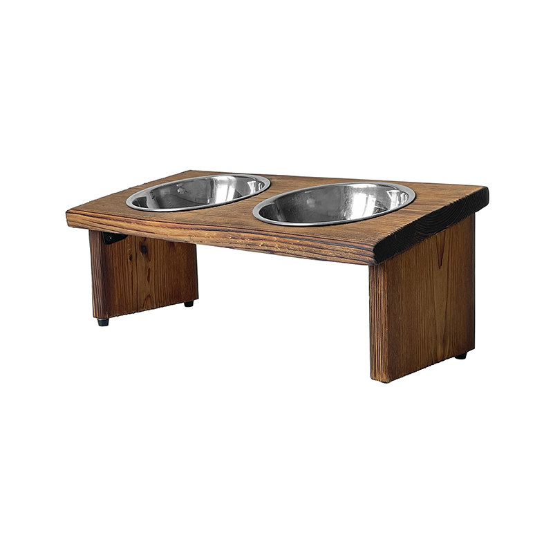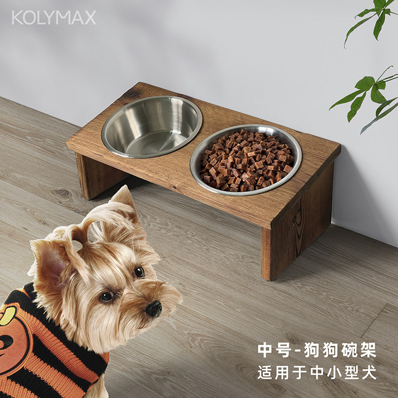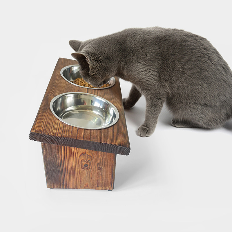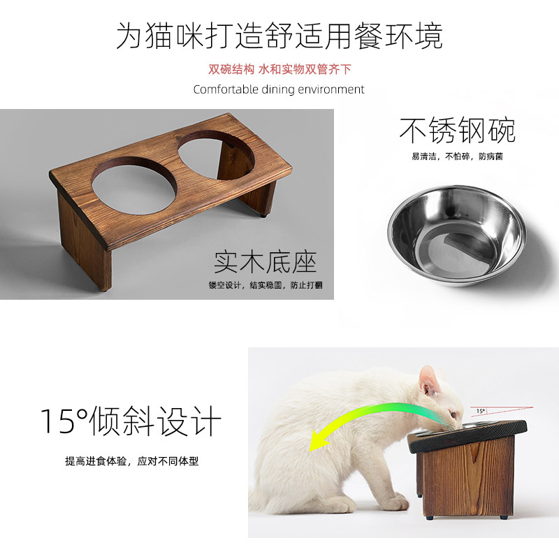 美式复古实木猫碗架304不锈钢猫食盆双碗浅口猫专用水碗架防打翻