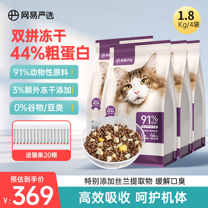 网易严选鲜肉猫粮 无谷全价冻干双拼猫粮 宠物主粮幼猫成猫全价通用猫主粮 冻干猫粮7.2kg