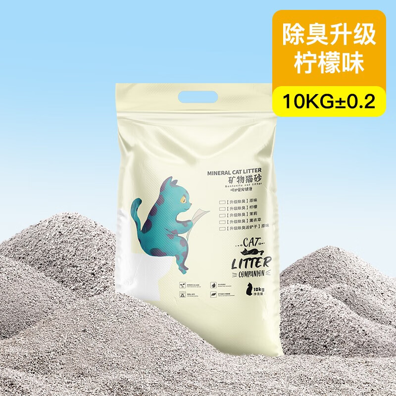 囧宝(CUTEPOL)钠基矿物猫砂原矿破碎除味除臭结团快大颗粒无粉尘吸水快猫咪用品 【活性炭低粉尘猫砂】柠檬味20斤