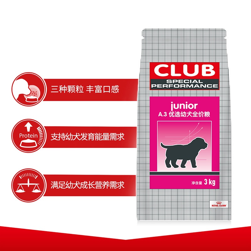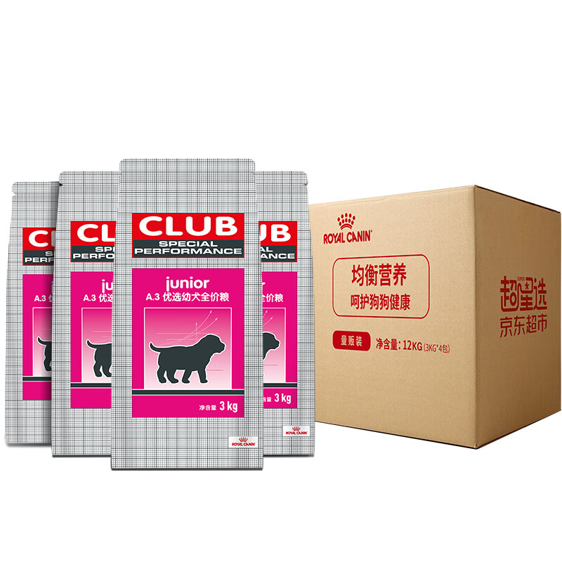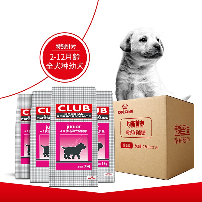 ROYAL CANIN 皇家狗粮 A3优选幼犬狗粮 全价粮 12kg(3kg*4)量贩装 怀孕及哺乳期母犬 全犬种通用幼犬粮
