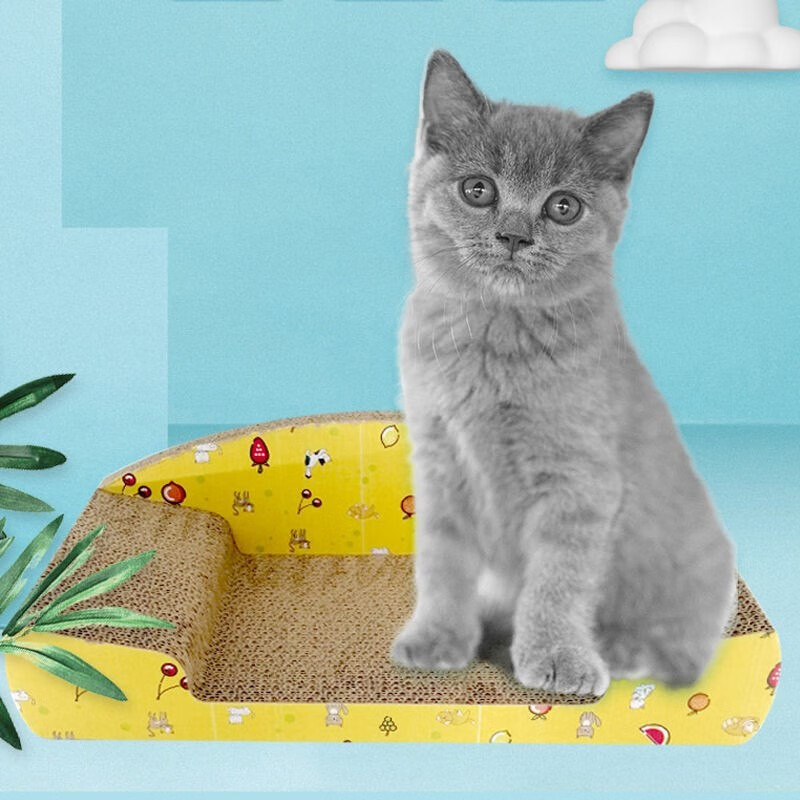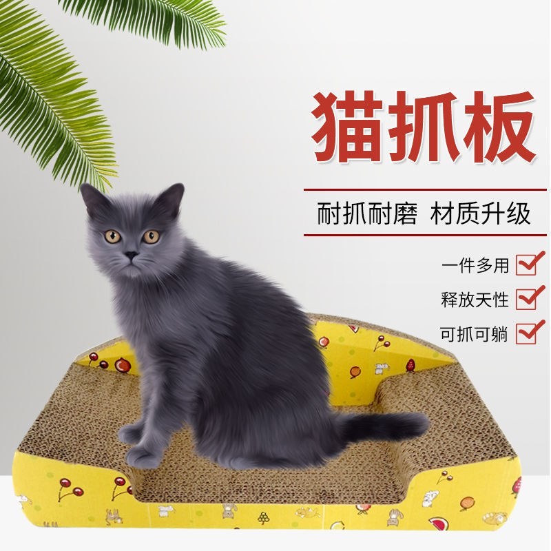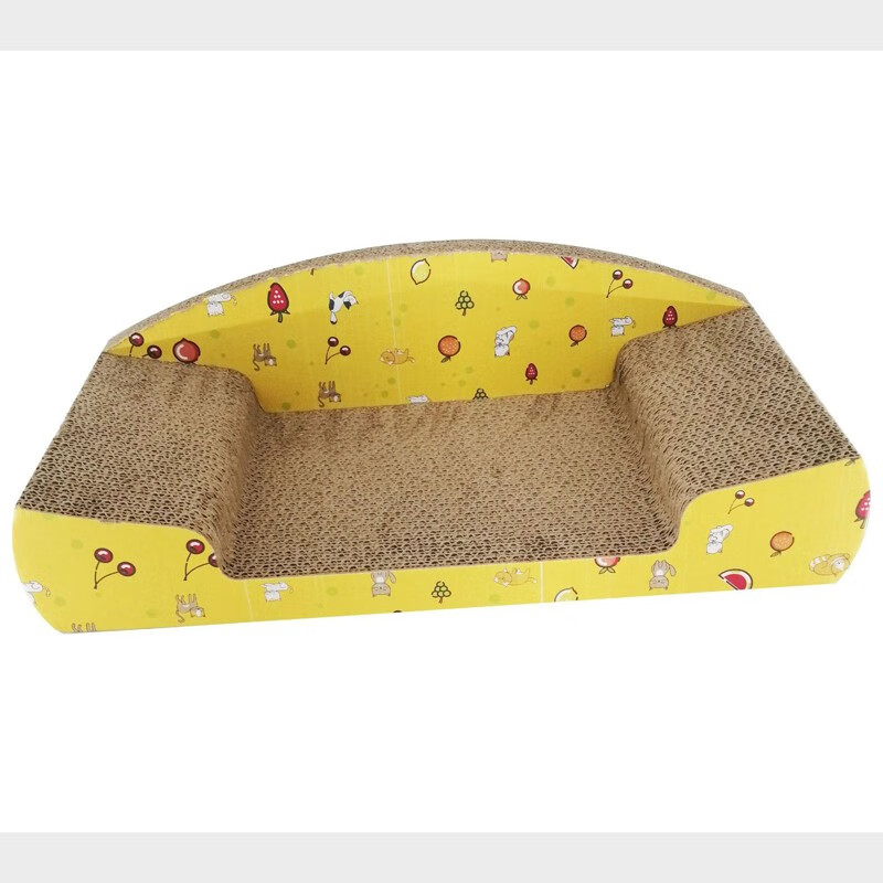 共度 耐磨猫窝 耐用猫爪板窝 磨爪瓦楞纸宠物猫咪玩具用品 黄色沙发猫抓板(48*23*14.5cm)