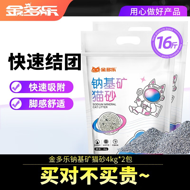 金多乐混合猫砂绿茶豆腐砂低尘活性炭矿石猫沙大袋装 钠基矿石猫砂4kg*2包-不可冲厕