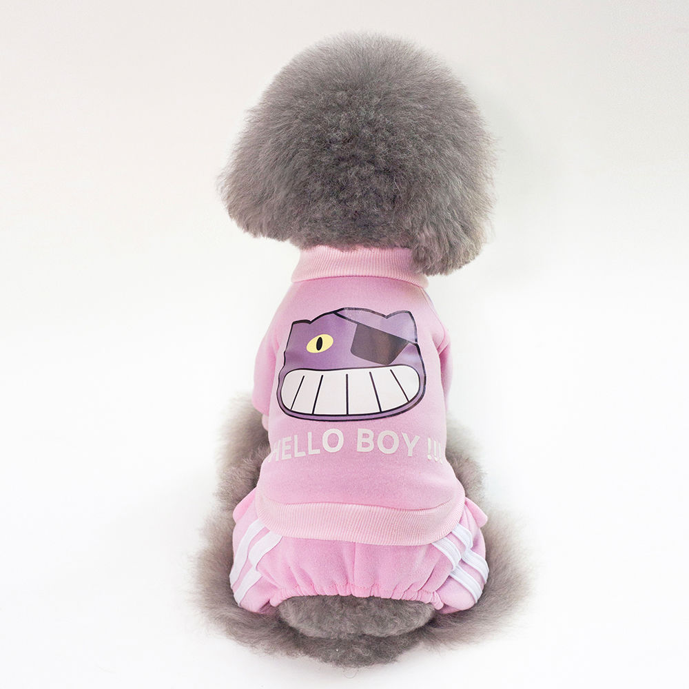 宠物春秋衣服狗狗棉衣泰迪小型犬猫咪衣服春季哈喽猫四脚保暖卫衣 哈喽猫卫衣【斗转心移CW2】-粉色 M码(背长25厘米:适合4-5斤)