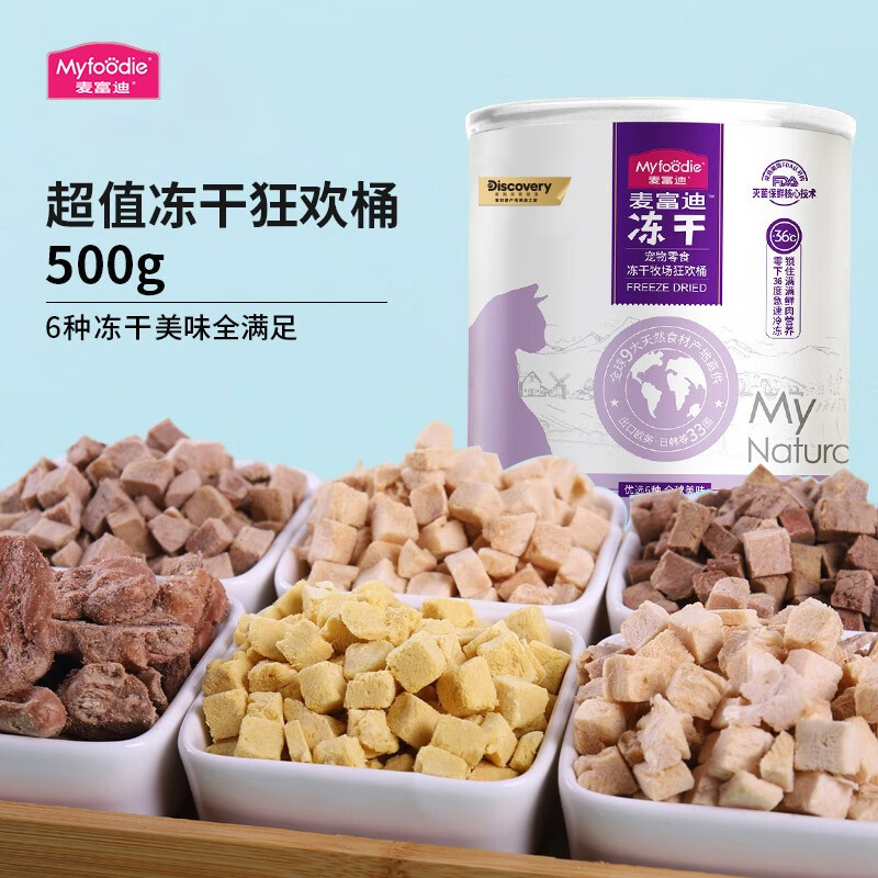 麦富迪(Myfoodie)麦富迪猫零食 猫冻干猫咪零食冻干桶冻干肉 成猫幼猫冻干猫粮 狂欢桶500g