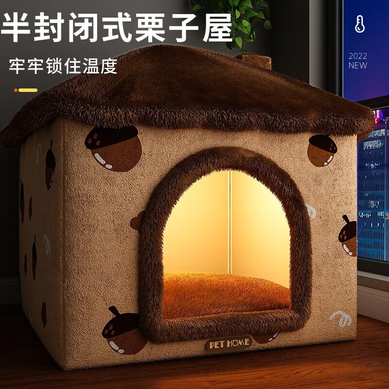 蔻丝猫窝冬季电热毯冬天保暖加热发热智能恒温封闭式超大号猫狗窝房子 【含骨架防塌】50*50*53[30斤内]