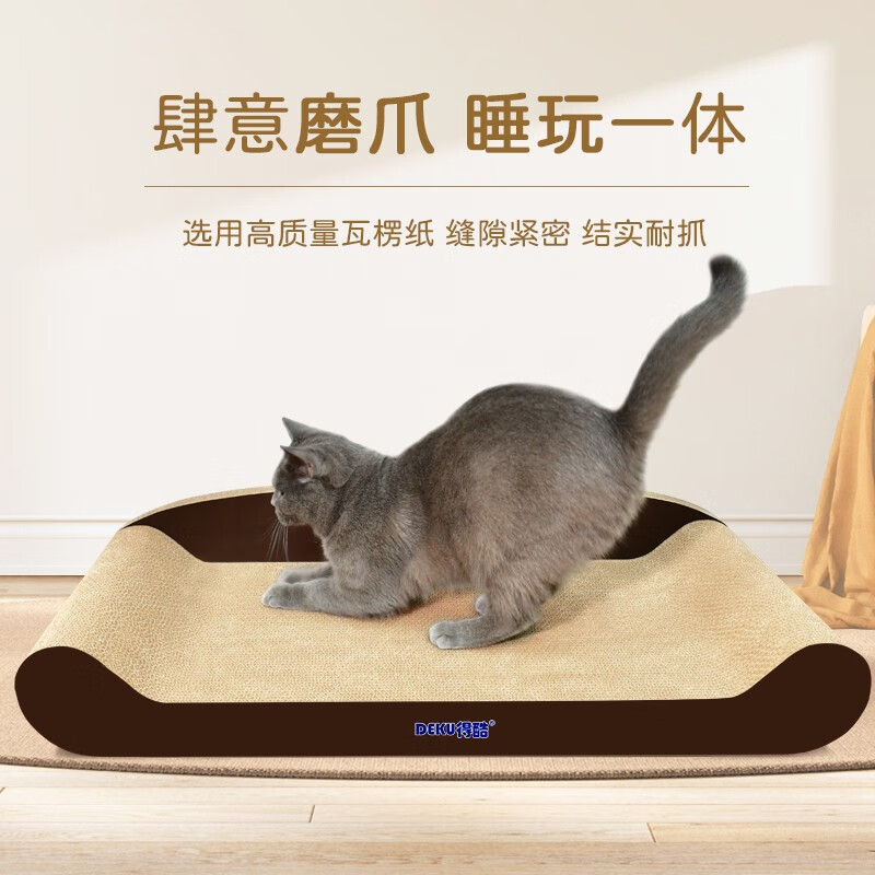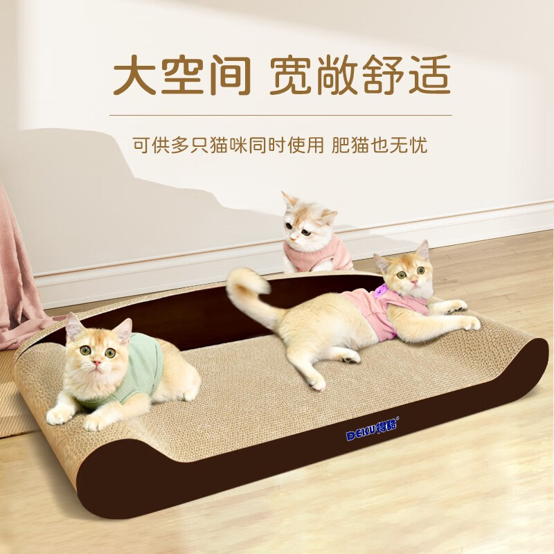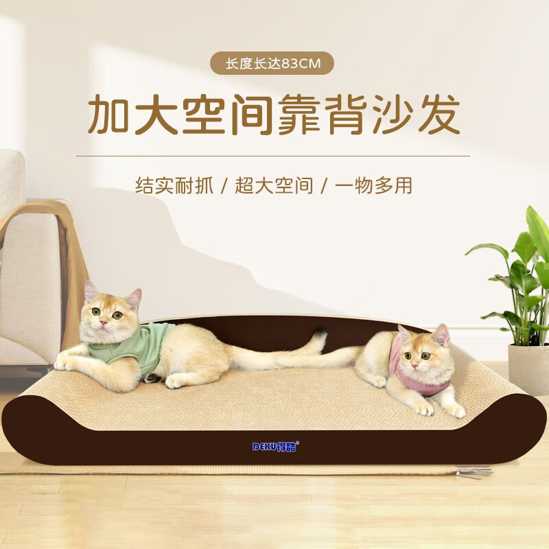 得酷 瓦楞纸沙发猫抓板磨爪板猫咪玩具日用品猫咪沙发抓板 咖啡色特大号沙发【83厘米】