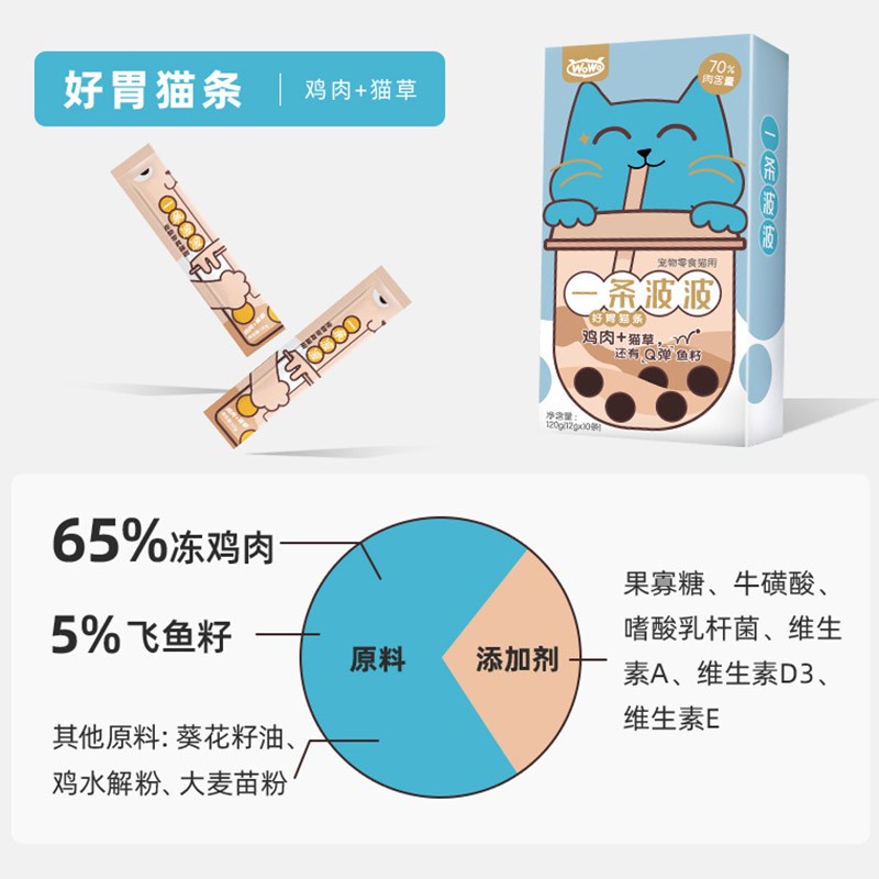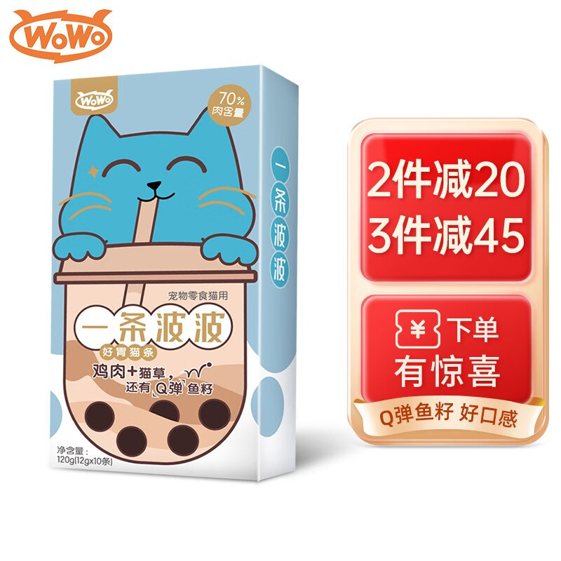 WoWo猫条喔喔猫零食 幼猫小鱼干湿粮营养布丁 鸡肉猫草味(12g*10条)