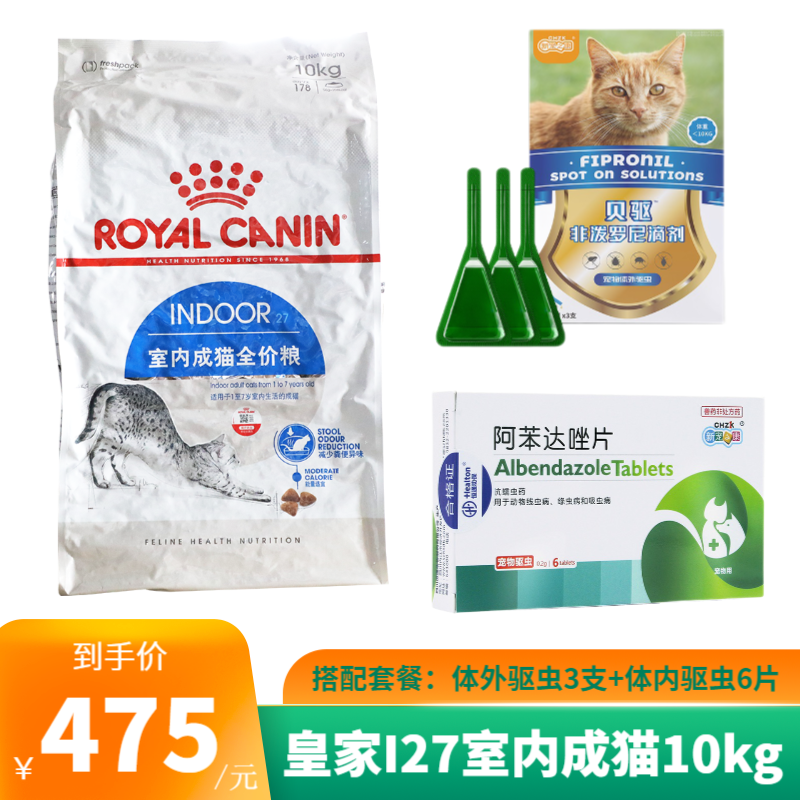 ROYAL CANIN 皇家猫粮I27室内成猫粮去毛球 室内成猫10kg 体外驱虫 体内驱虫