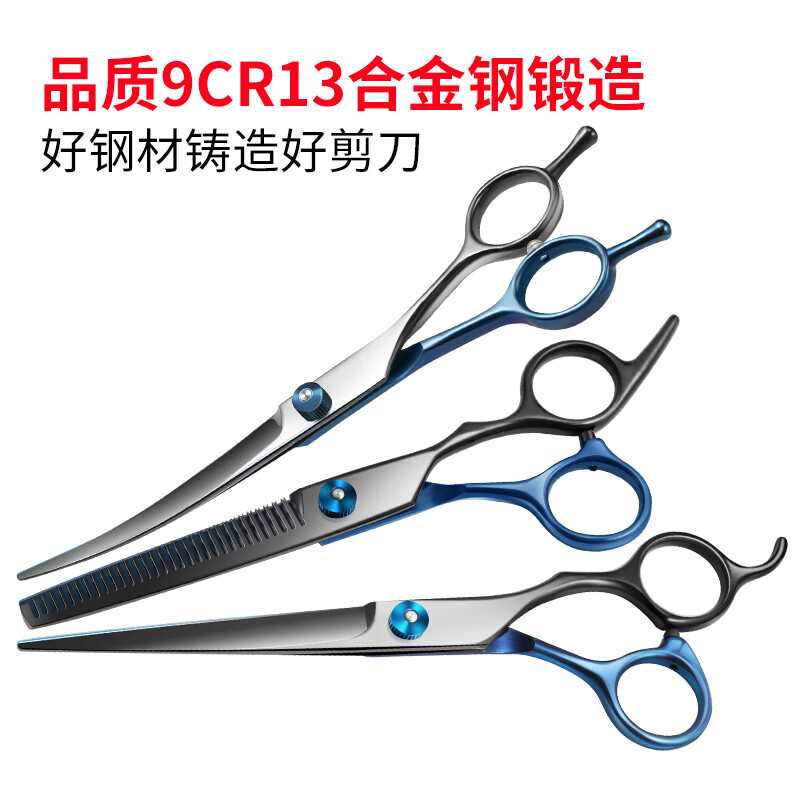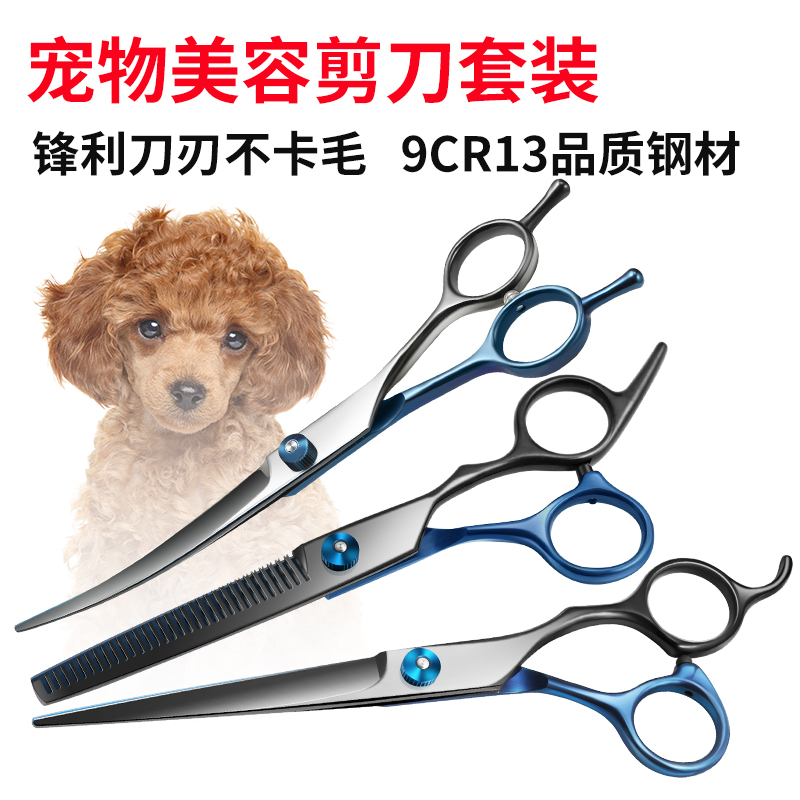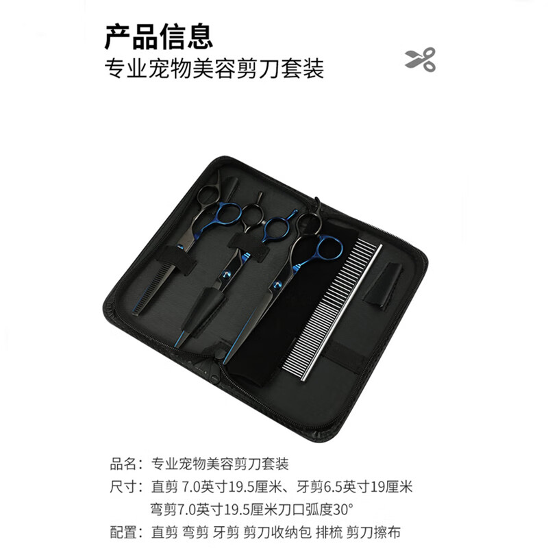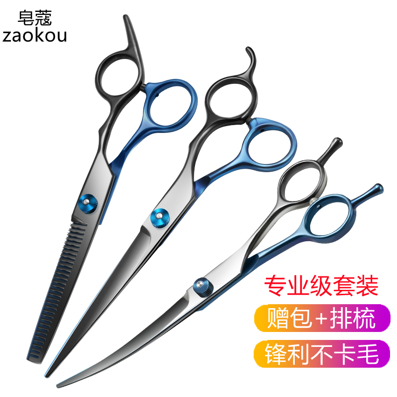 皂蔻 宠物美容剪刀套装 猫咪狗狗专用修毛工具 直弯牙剪排梳泰迪比熊理发神器7寸四件套