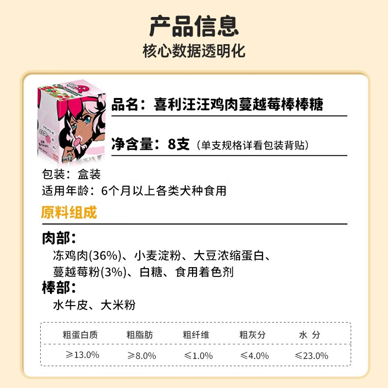 日本日和优宠wanwan宠物棒棒糖狗狗零食磨牙棒鸡肉牛肉奶酪营养成幼犬泰迪训练奖励宠物零食 鸡肉蔓越莓-整盒8支