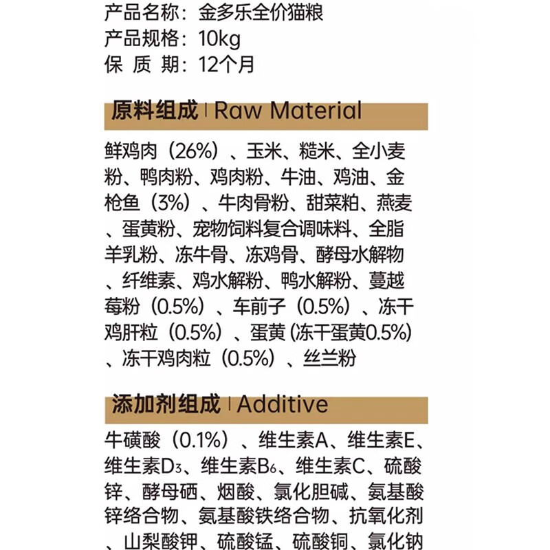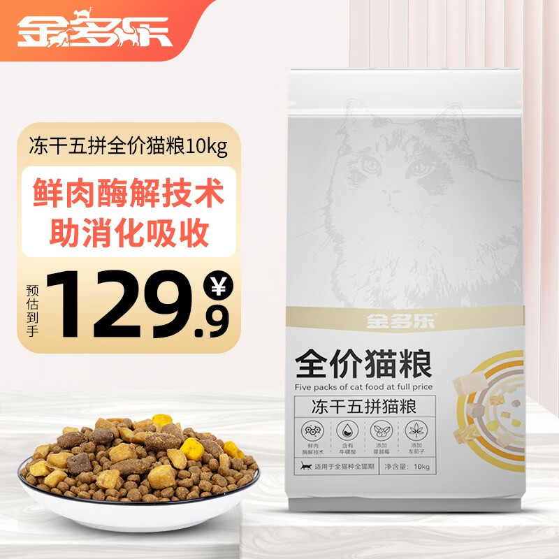 金多乐全价冻干猫粮主食英短美短成猫幼猫通用全阶段营养猫饭 冻干五拼猫粮10kg