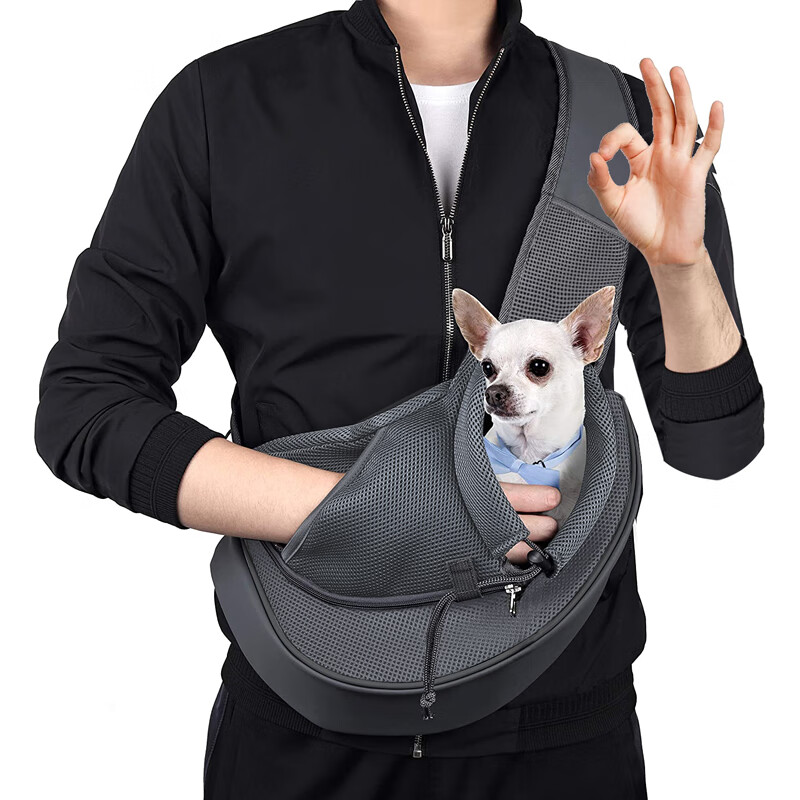 搭啵兔宠物背包猫咪背袋外出便携透气小狗包超轻猫包斜挎单肩小型宠物包 豪华款灰色可撸 S-建议5斤内用