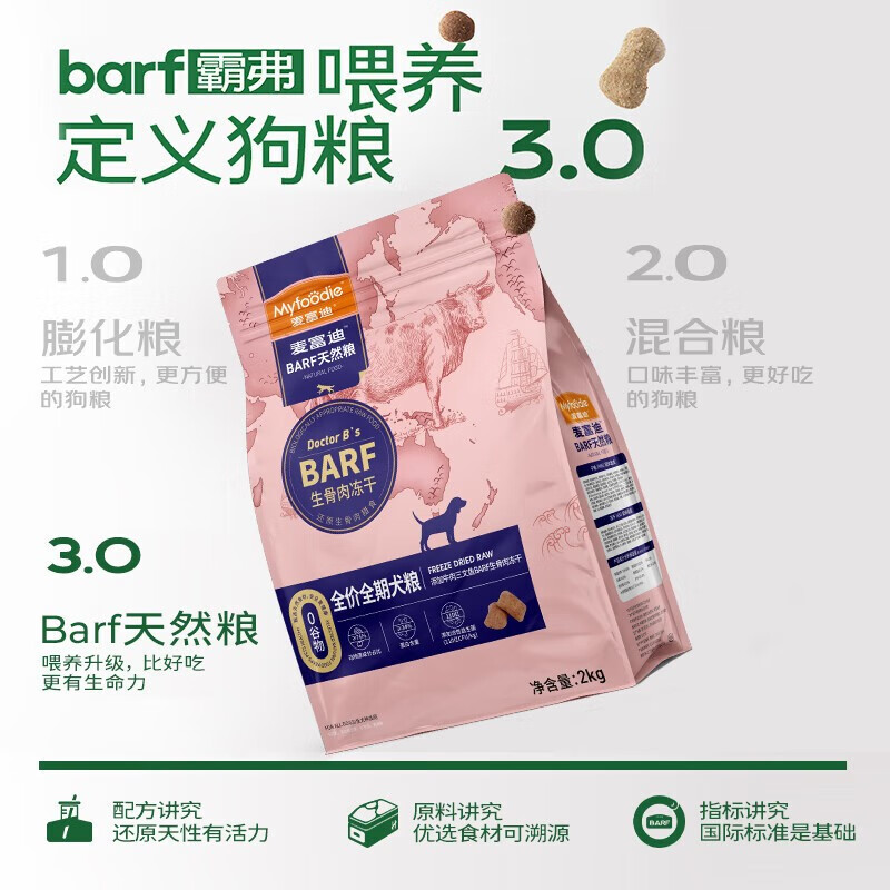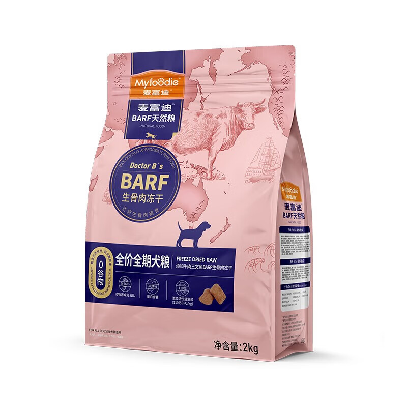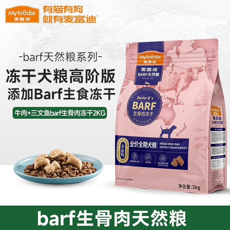 麦富迪barf狗粮霸弗生骨肉冻干双拼鲜肉营养蛋白全期通用成犬粮宠物零食 【牛肉三文鱼冻干】成犬粮6kg