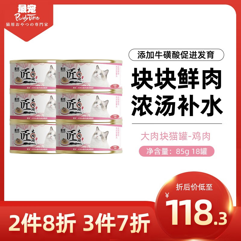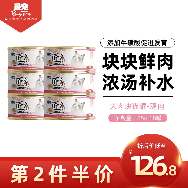 澳洲品牌 最宠 (Paddy Time)猫罐头 宠物零食罐猫粮猫湿粮成幼猫咪增肥营养汤罐发腮多口味 大肉块鸡肉汤罐85g*18罐