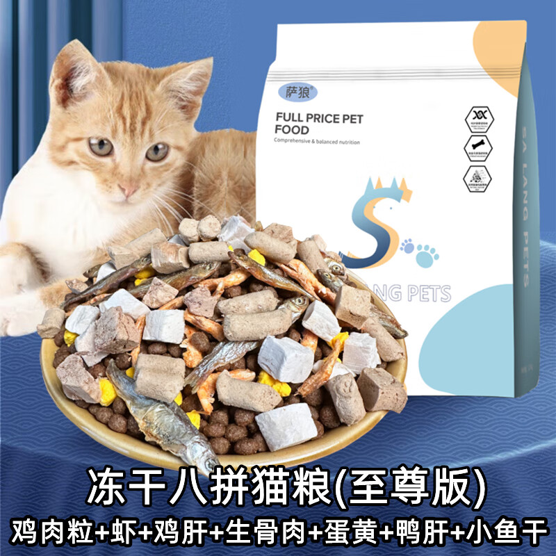 凛东鸡肉鱼肉冻干猫粮幼成猫咪英短小猫增肥营养蛋黄发腮10斤包装干粮 海鱼味单猫粮5斤 000g重量以上选项为准