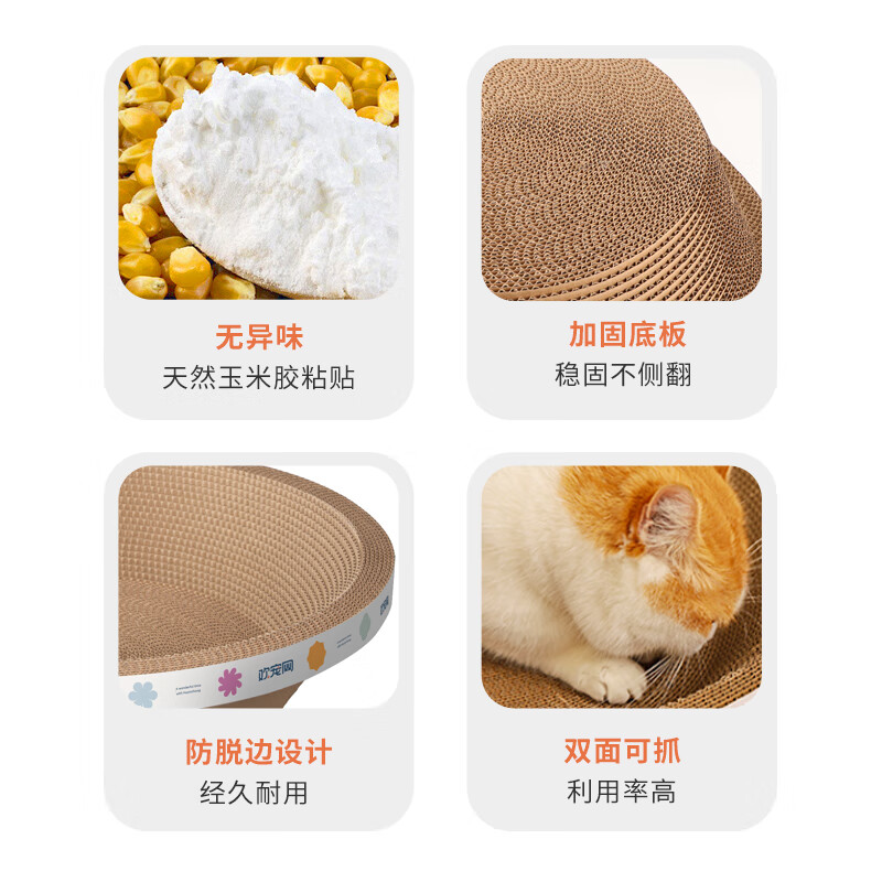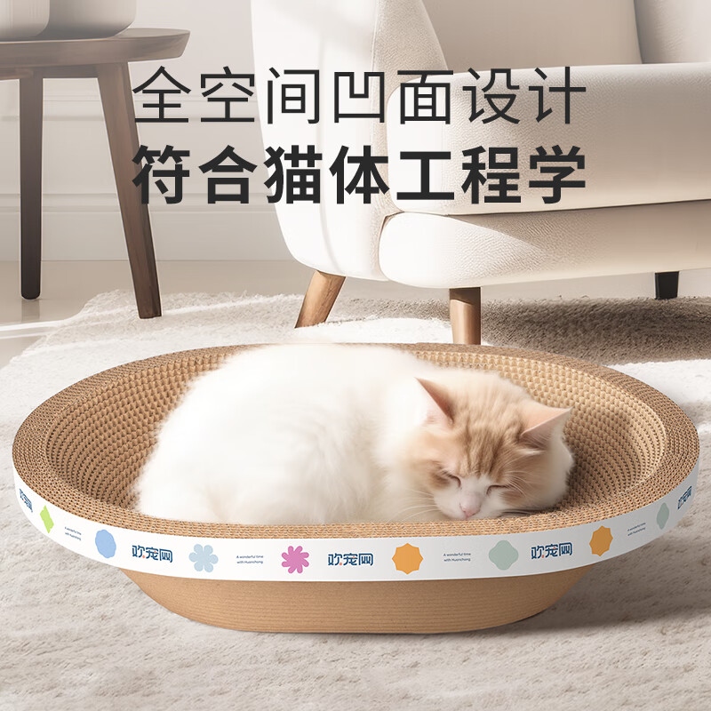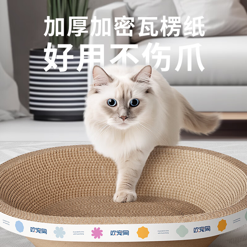 欢宠网 猫抓板窝【特大号-贈猫薄荷】猫抓盆猫爪板逗猫咪玩具幼小猫猫磨爪器不掉屑圆碗形耐磨瓦楞纸宠物用品