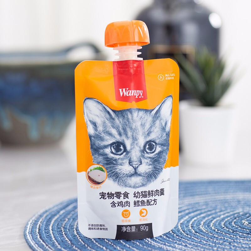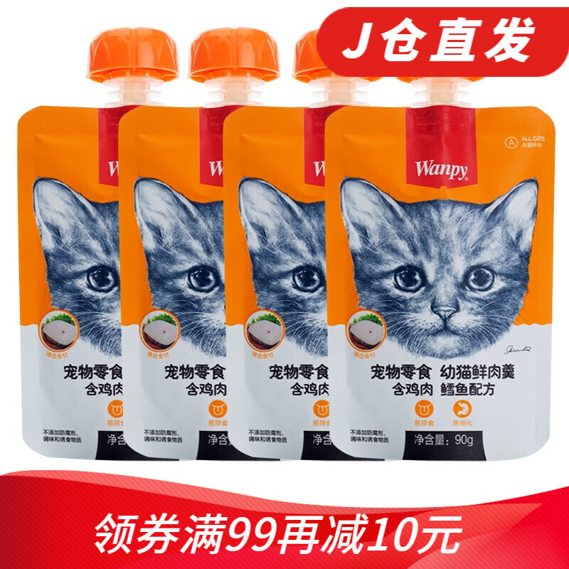 Wanpy顽皮鲜肉羹猫零食猫咪鲜封包猫湿粮幼猫成猫全期猫通用 幼猫鸡肉鳕鱼90g*4包 1份