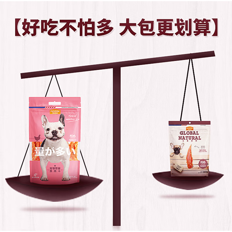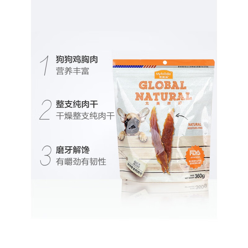麦富迪(Myfoodie)鸡胸鸡肉干鸭肉干狗狗零食磨牙棒泰迪拉布拉多幼犬宠物礼包 【主图款不上火】鸭肉干360g 1包 (选对应选项)