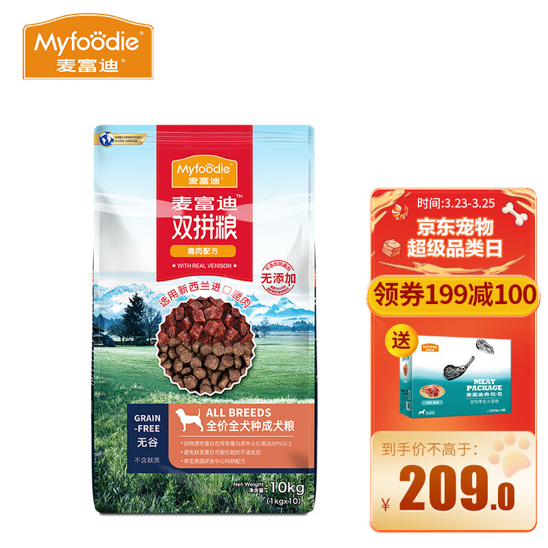 麦富迪成犬狗粮 无谷鹿肉双拼哈士奇金毛萨摩耶泰迪通用型10kg