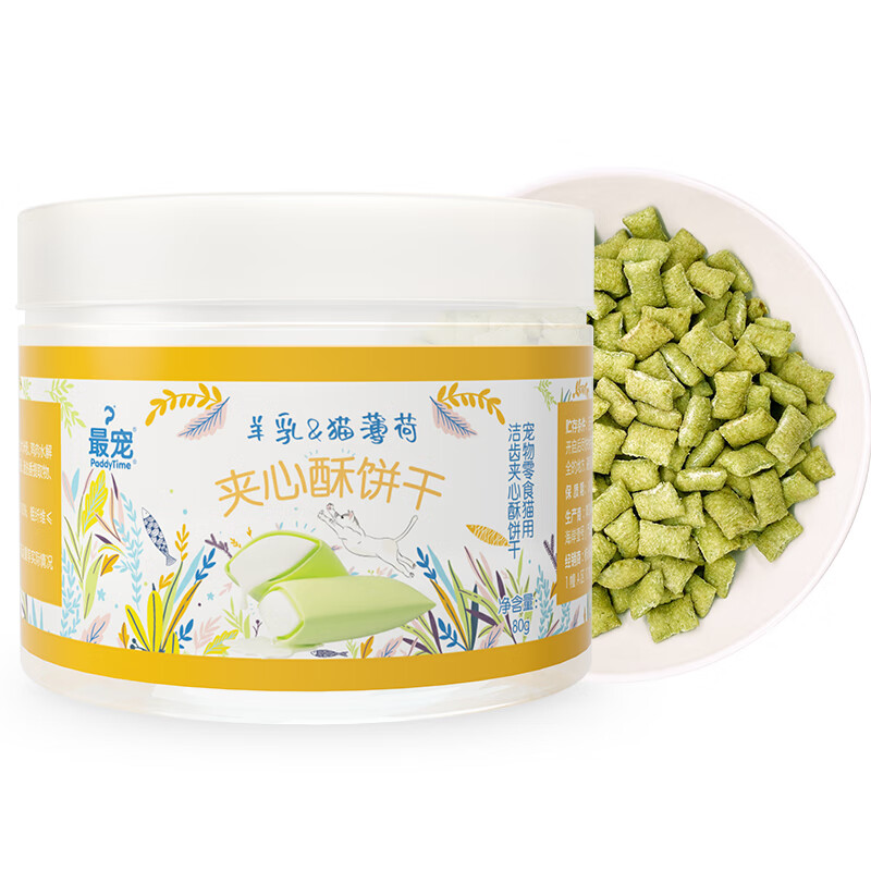 澳洲品牌 最宠(paddytime)猫零食夹心酥脆饼干80g 猫咪洁齿鸡肉羊乳猫薄荷宠物食品小鱼成幼老年猫粮毛球挑嘴