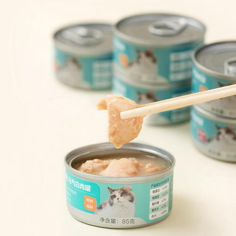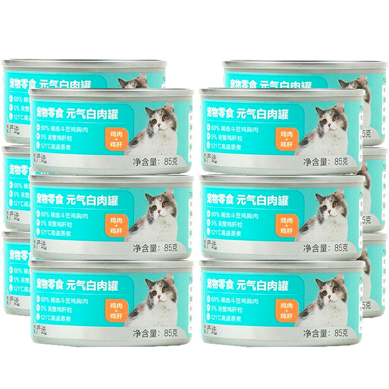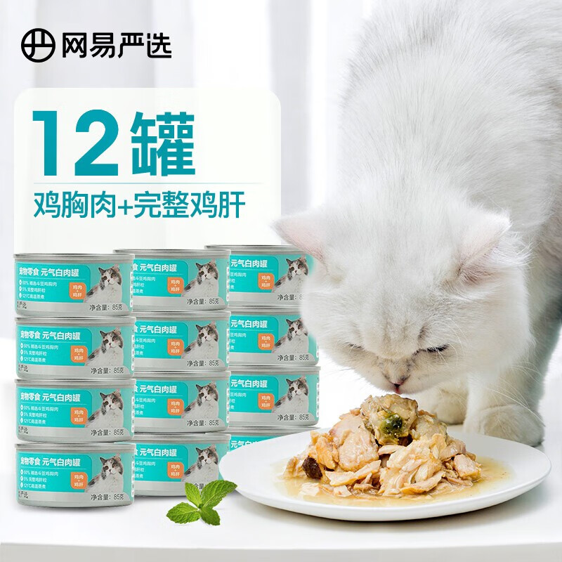 网易严选 宠物猫罐头猫湿粮白肉罐 斗笠鸡胸肉 完整鸡肝混合口味 85g*12罐